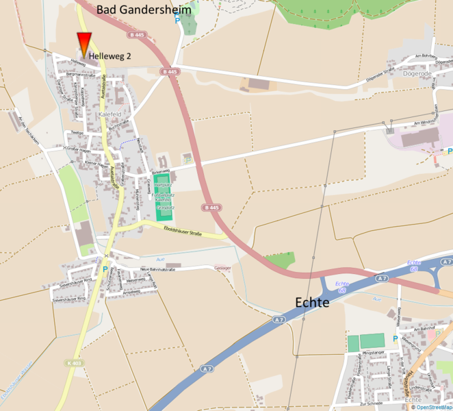 Nehmen Sie die 1. Ausfahrt der Ortsumgehung Kalefeld. Nach 300 m (Helleweg / Spedition Freise) sehen Sie rechts das Firmenschild.
